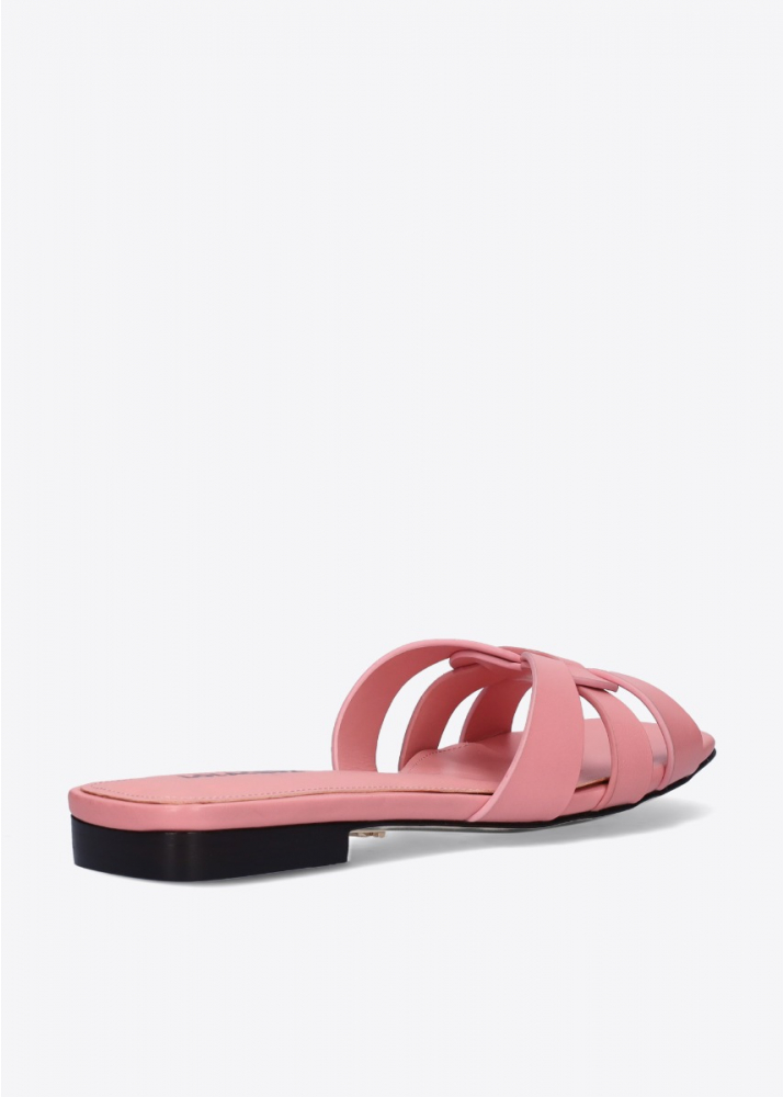 Sandalias planas de mujer Lola Cruz de piel. Modelo Grosella con tiras entrelazadas Ref.405Z10BK ref.405Z10BK petalo