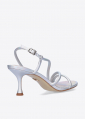 Sandalias de tacón de mujer Lola Cruz de piel. Modelo Seren con tiras finas bombeadas y piel metalizada iridiscente Ref.240Z18BK ref.240Z18BK plata