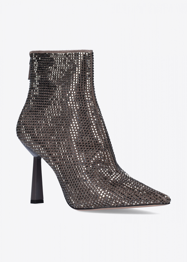 Botines de mujer Lola Cruz de ante. Modelo Austro con apliques de brillo y tacón lacado a tono Ref.014T04BK ref.014T04BK plomo